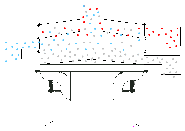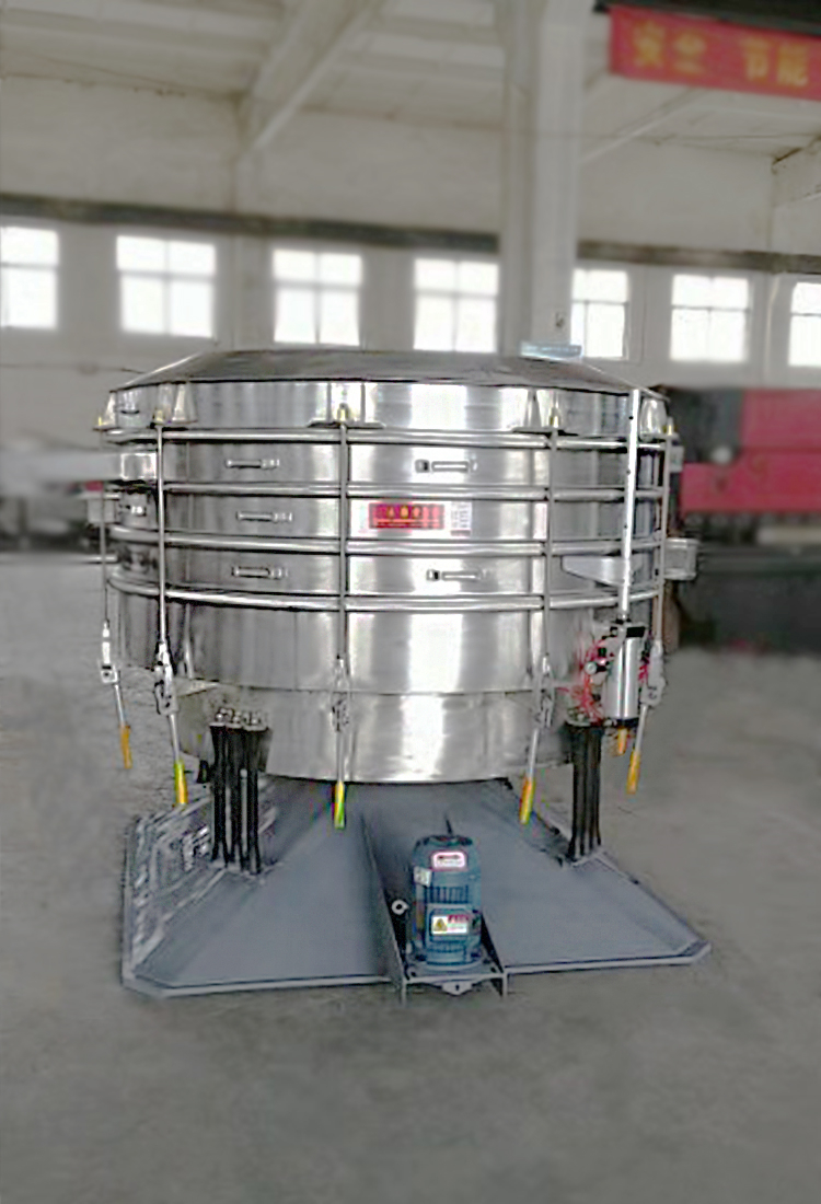 圓形搖擺篩是一款仿人工篩選的低頻旋振篩,其原理是:瞬時(shí)運(yùn)動(dòng)為沿徑向的位移和以此位移為軸的圓周運(yùn)動(dòng)的合成(螺旋運(yùn)動(dòng))。即可調(diào)節(jié)偏心距的激振器產(chǎn)生了非線性三維運(yùn)動(dòng),物料也產(chǎn)生同樣的近似手動(dòng)作業(yè)的運(yùn)動(dòng),從而達(dá)到篩分之目的,再配合篩分附件可得到更加理想的篩分效果;適合于圓球狀、圓柱狀、片狀、乃至不規(guī)則形狀易堵網(wǎng)且需要精密篩分的物料。
